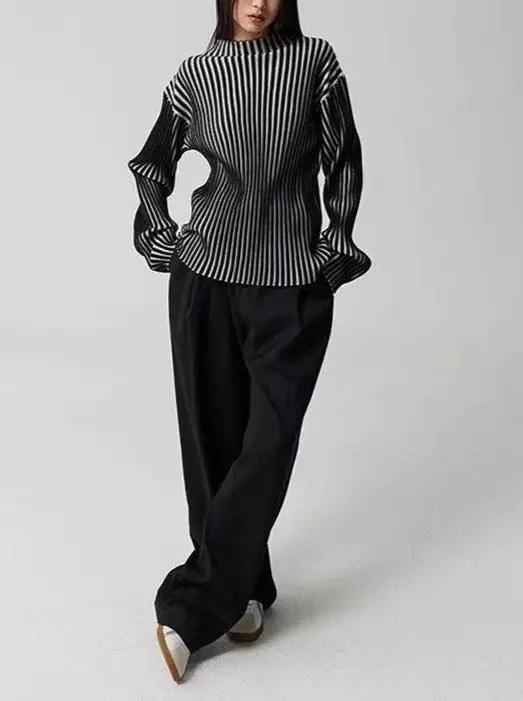 Make a striking statement with the black and white contrast turtleneck knit sweater. Its bold color blocking and classic turtleneck design create a sophisticated look that's both timeless and contemporary.