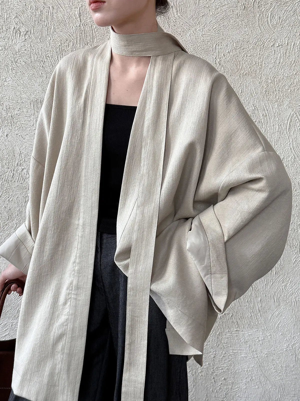 Solid Color Tie Trench Coat - Belted Design